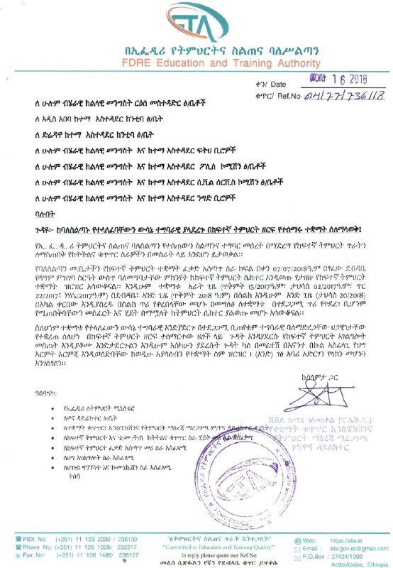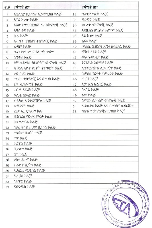 The Ethiopian Education and Training Authority has officially requested government intervention to shut down 52 higher education institutions that have failed to comply with regulatory directives. The authority has formally written to relevant government bodies, urging them to take immediate legal action against these entities.