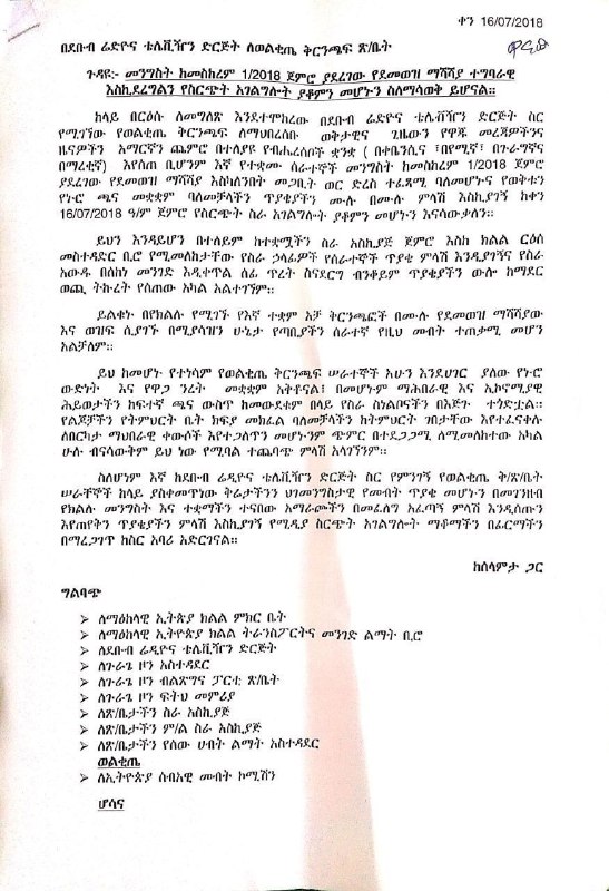 Tikvah Ethiopia attempted to reach the station manager and the head of the Central Ethiopia Regional President's office for comment. The station manager's phone was unreachable, and the regional official did not respond to multiple calls. However, local residents in Wolqite have confirmed that the station has ceased all broadcasting activities.